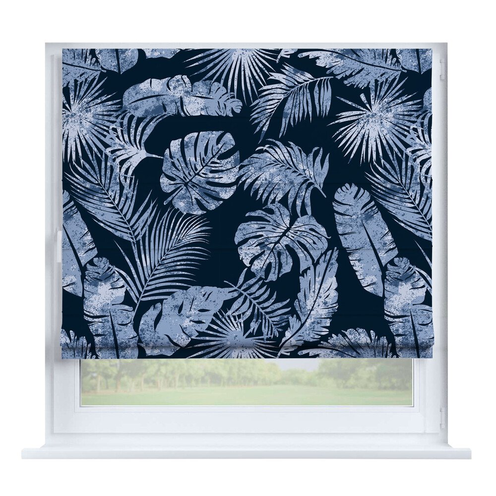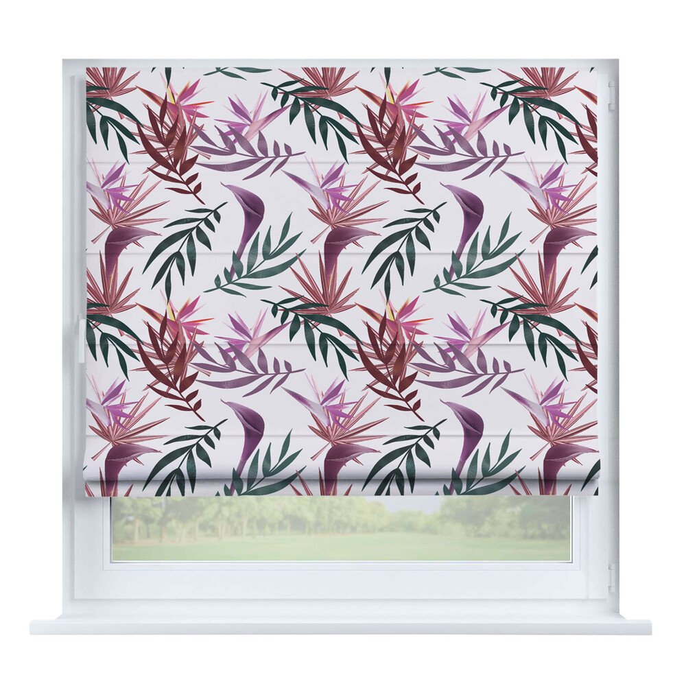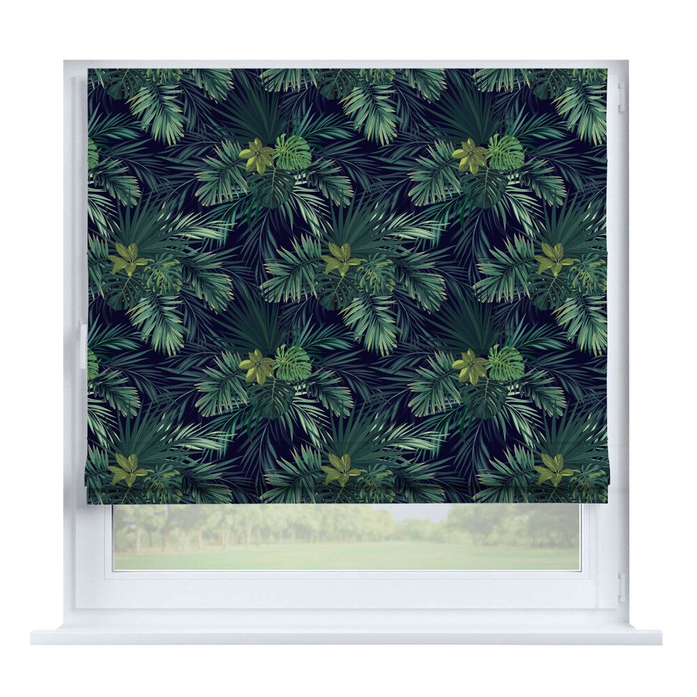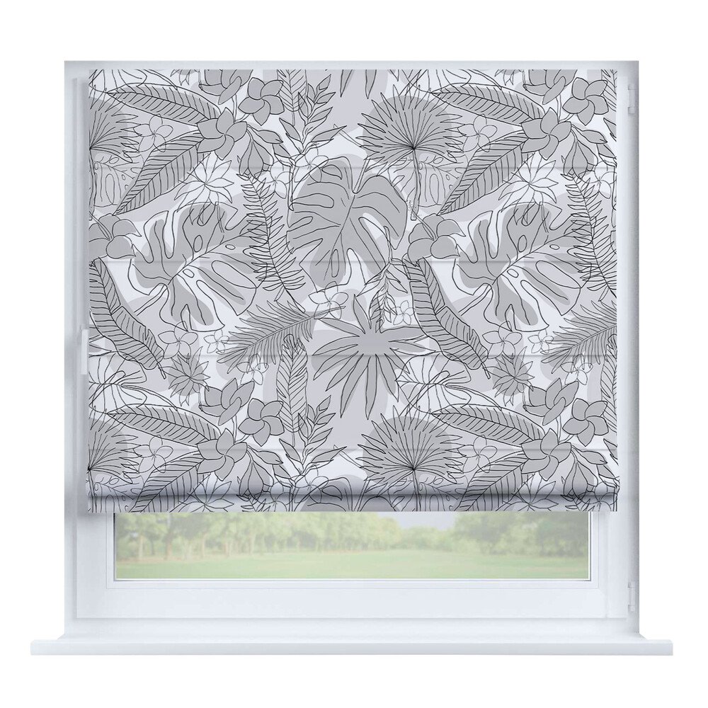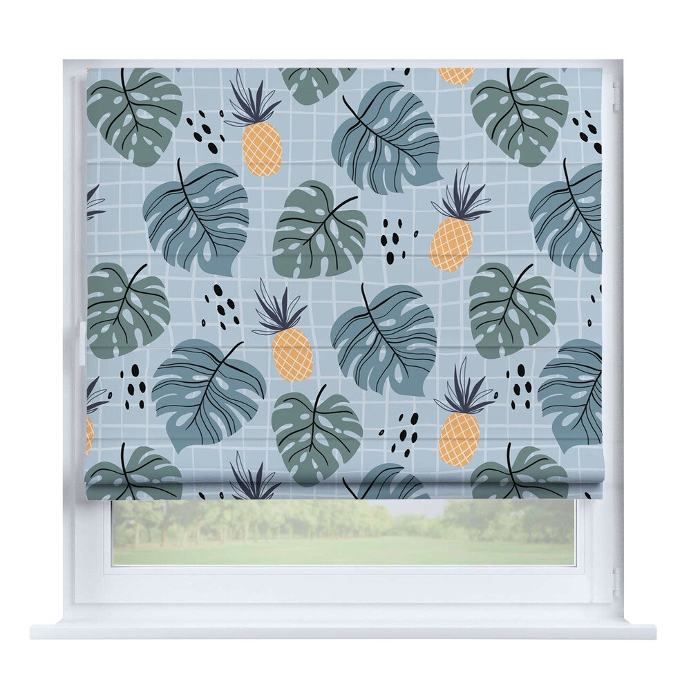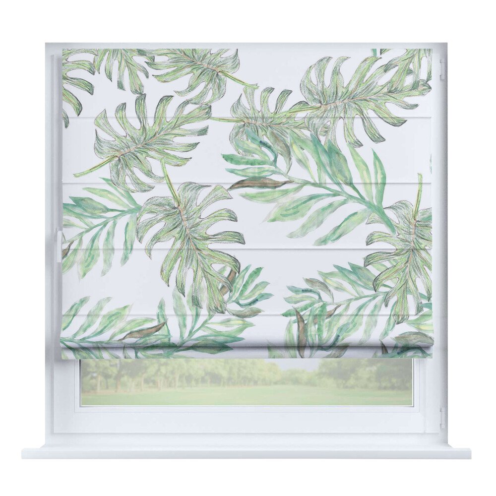 Римская штора на створку «Листья монстеры», карниз верёвочный