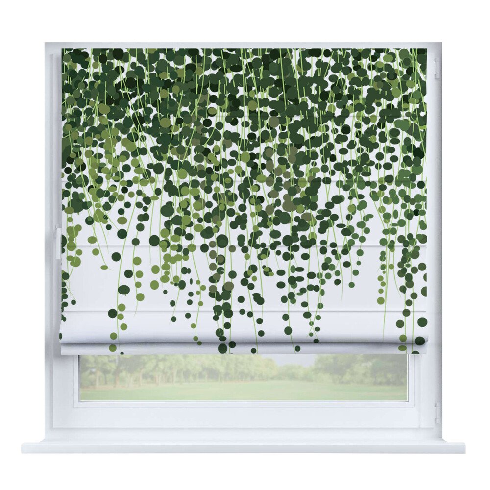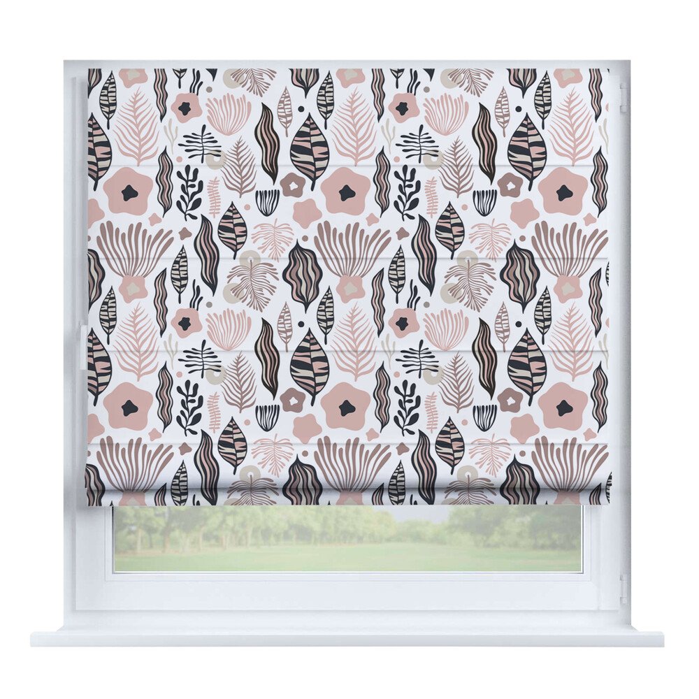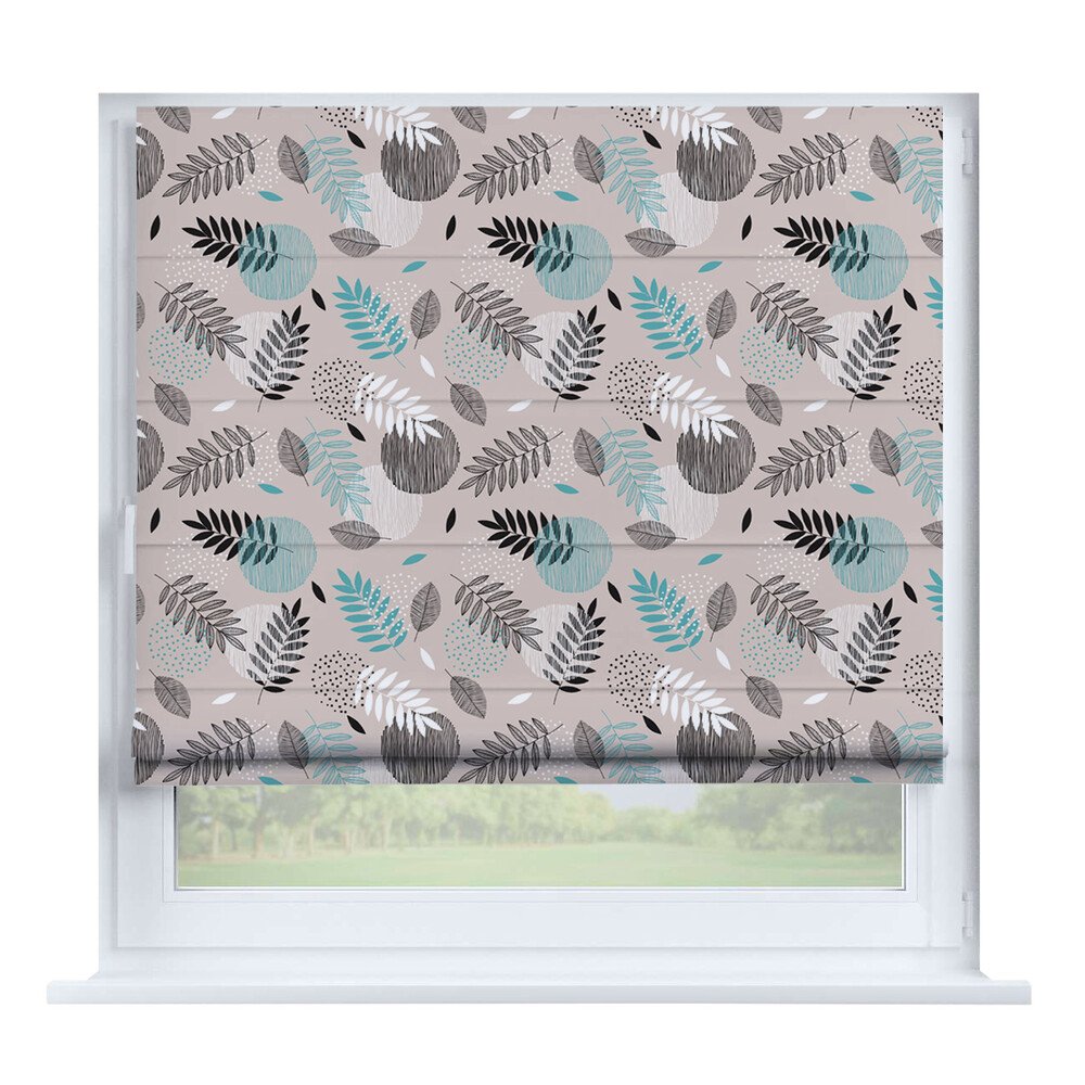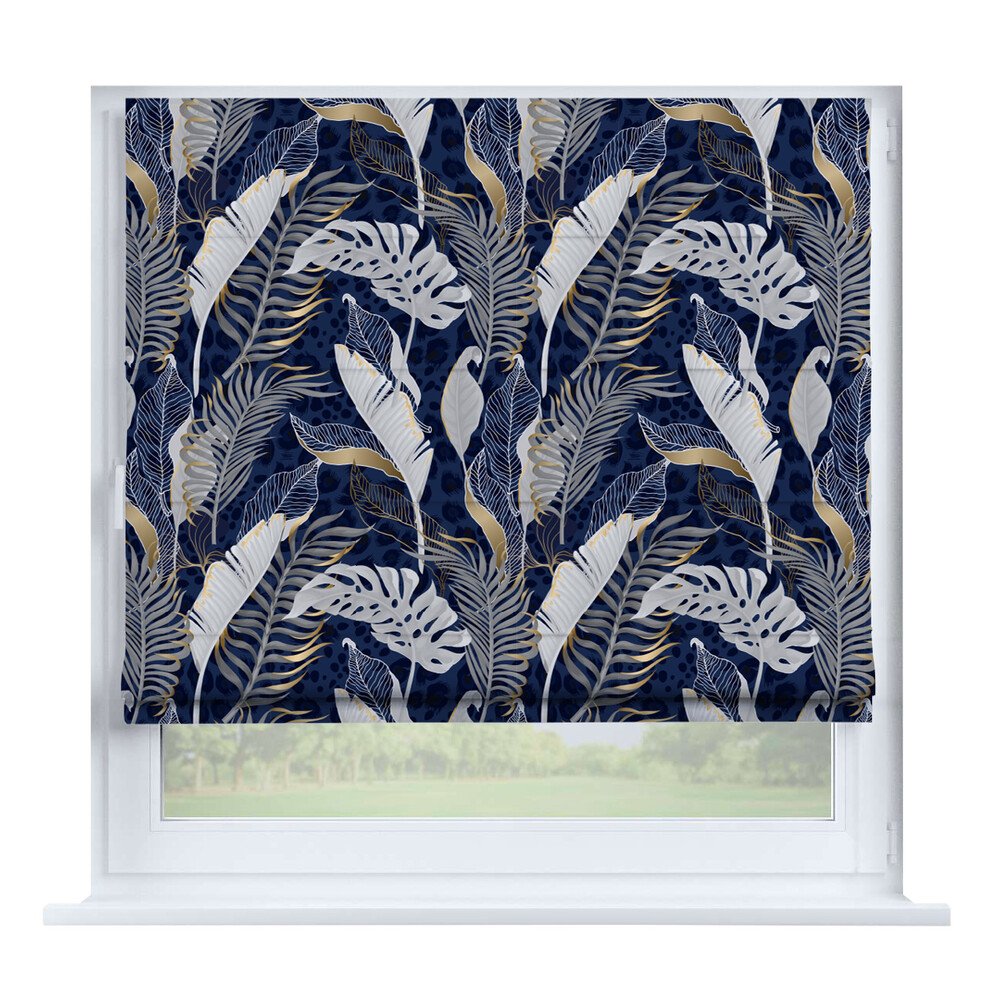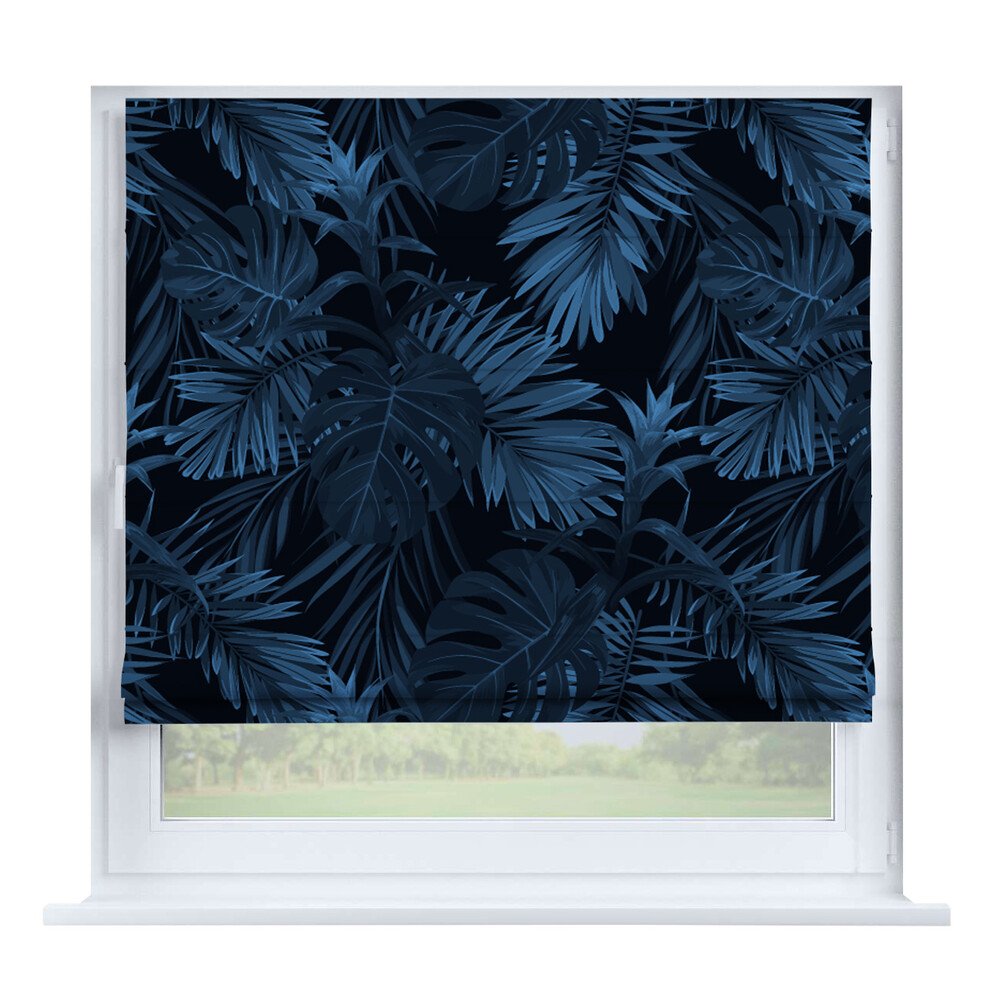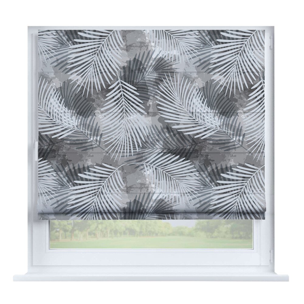 Римская штора на створку «Листья монстеры», карниз верёвочный
