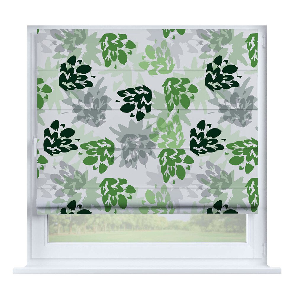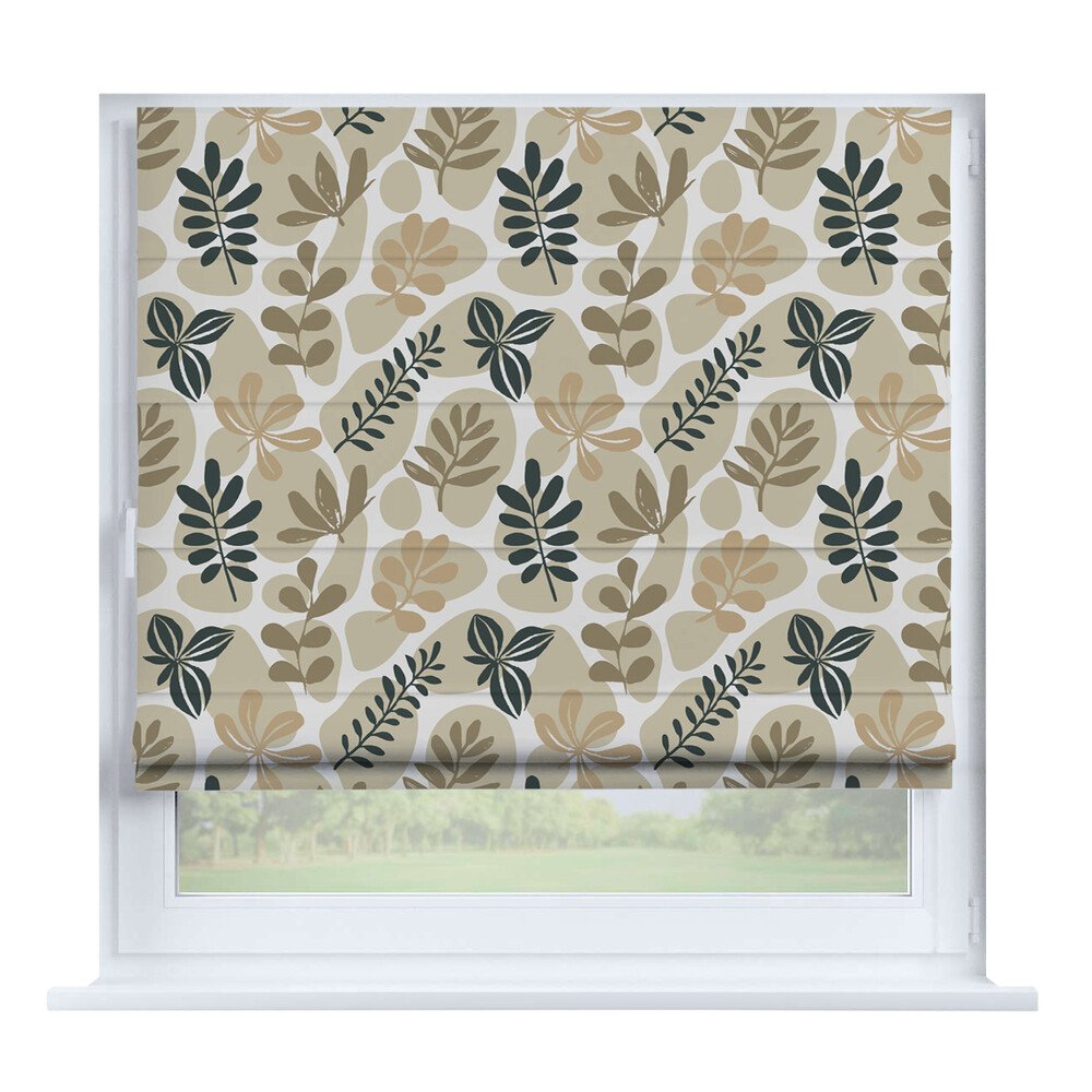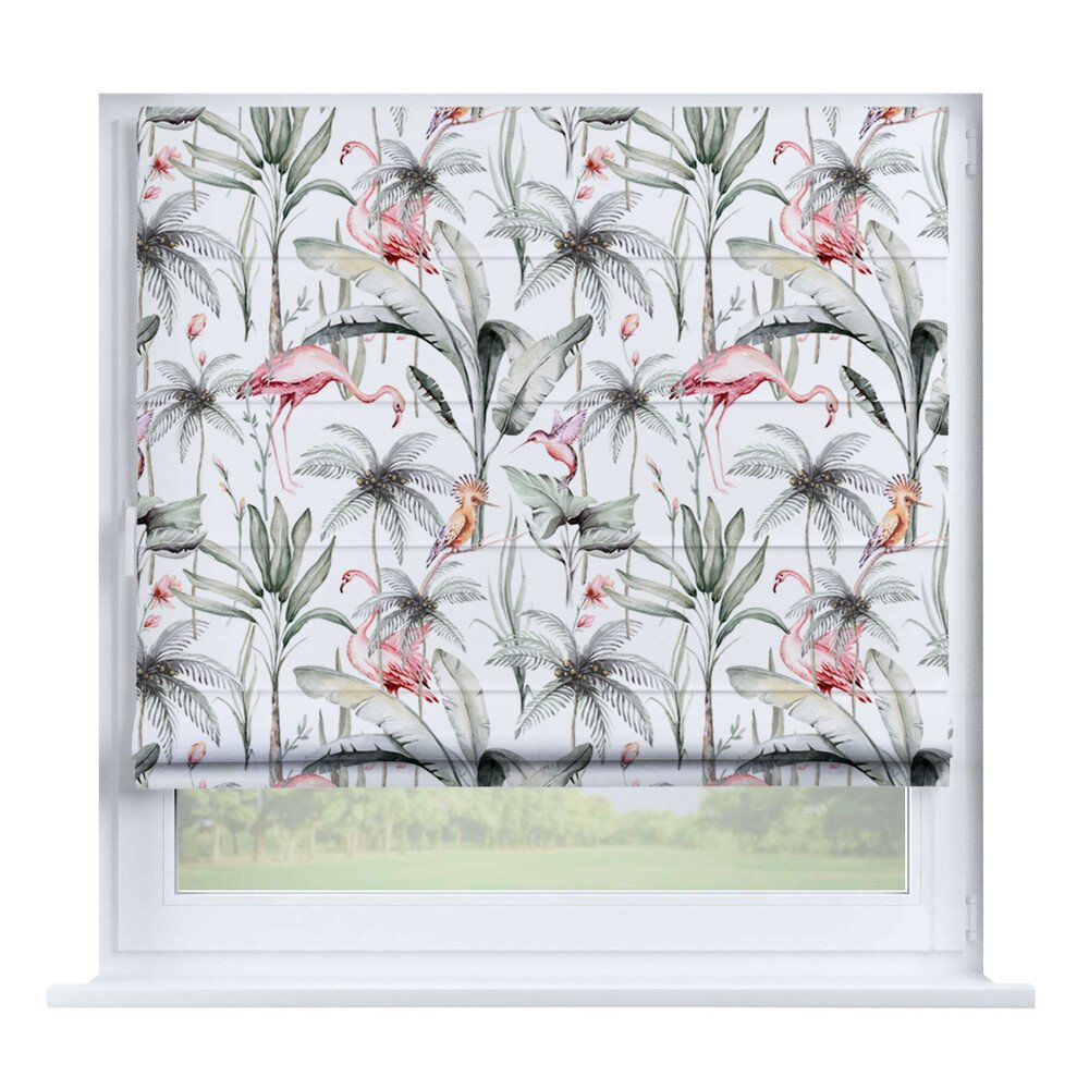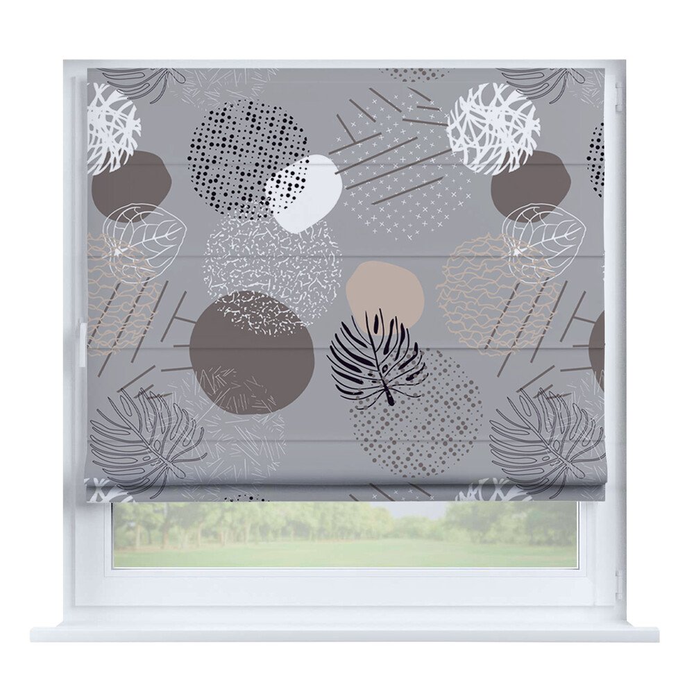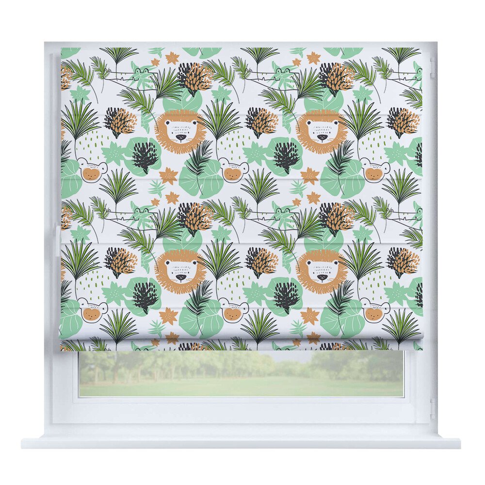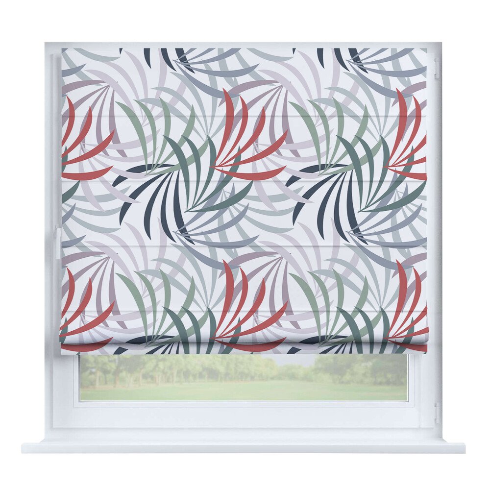 Римская штора на створку «Листья монстеры», карниз верёвочный