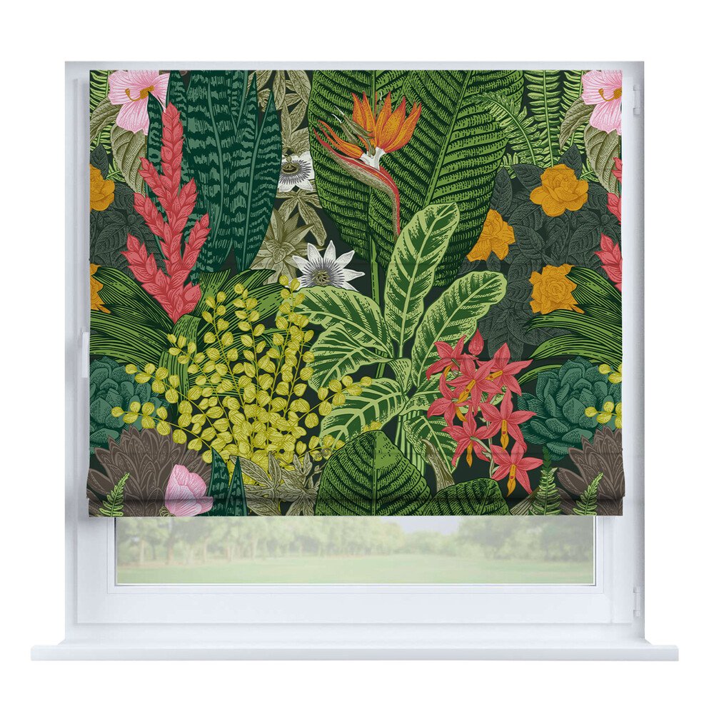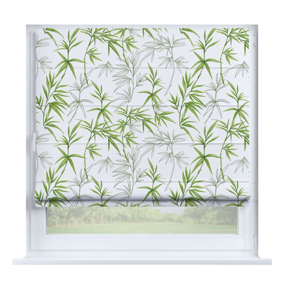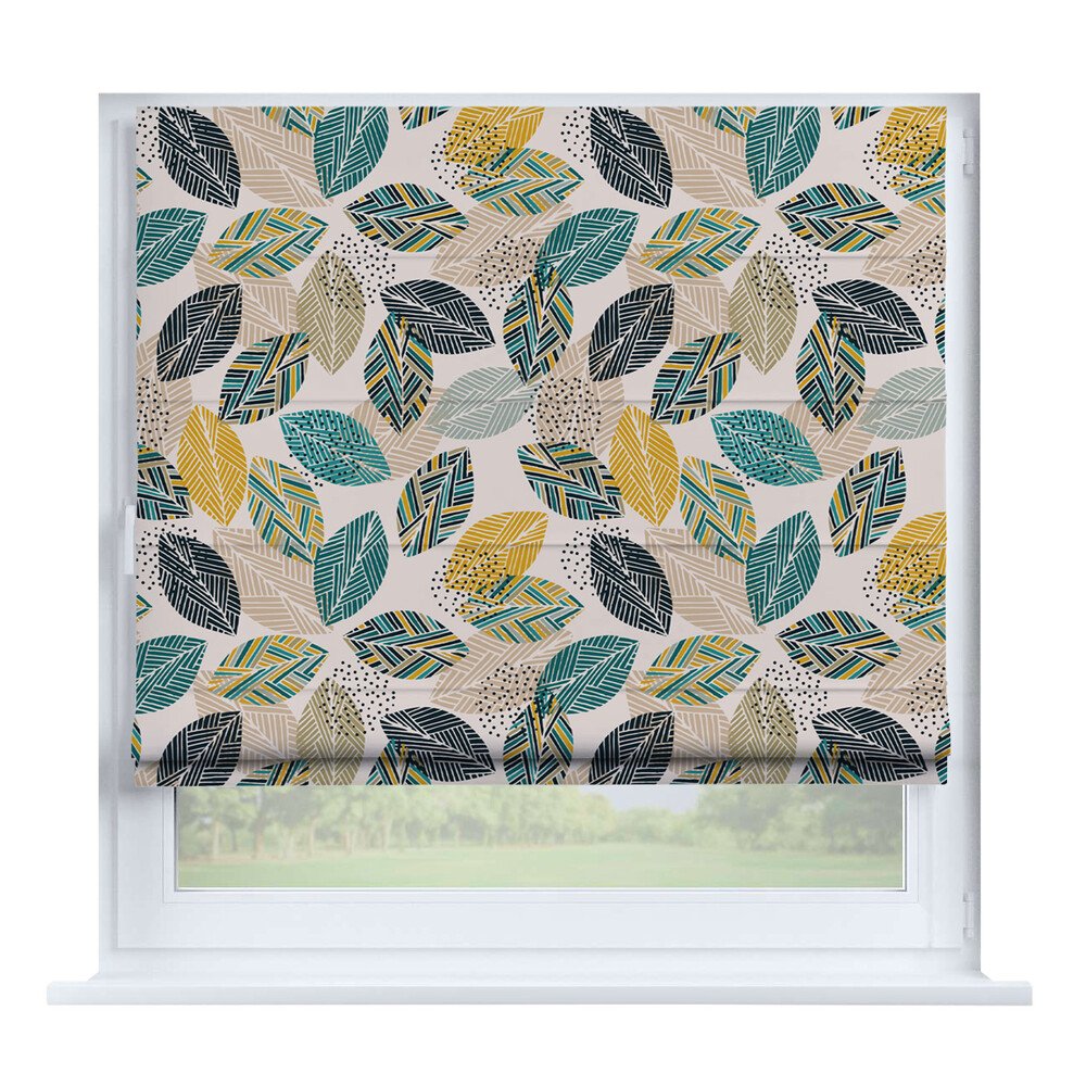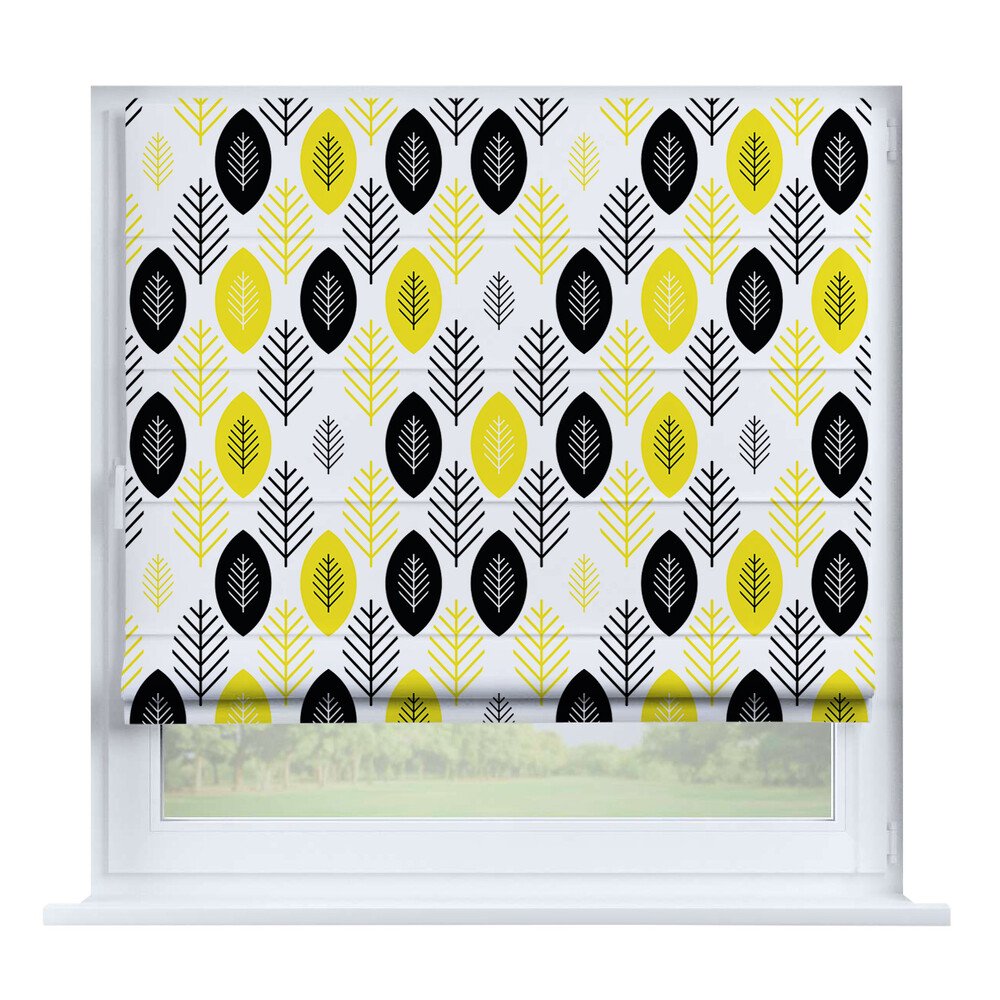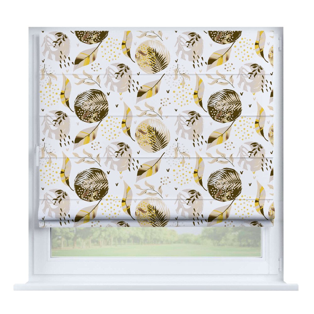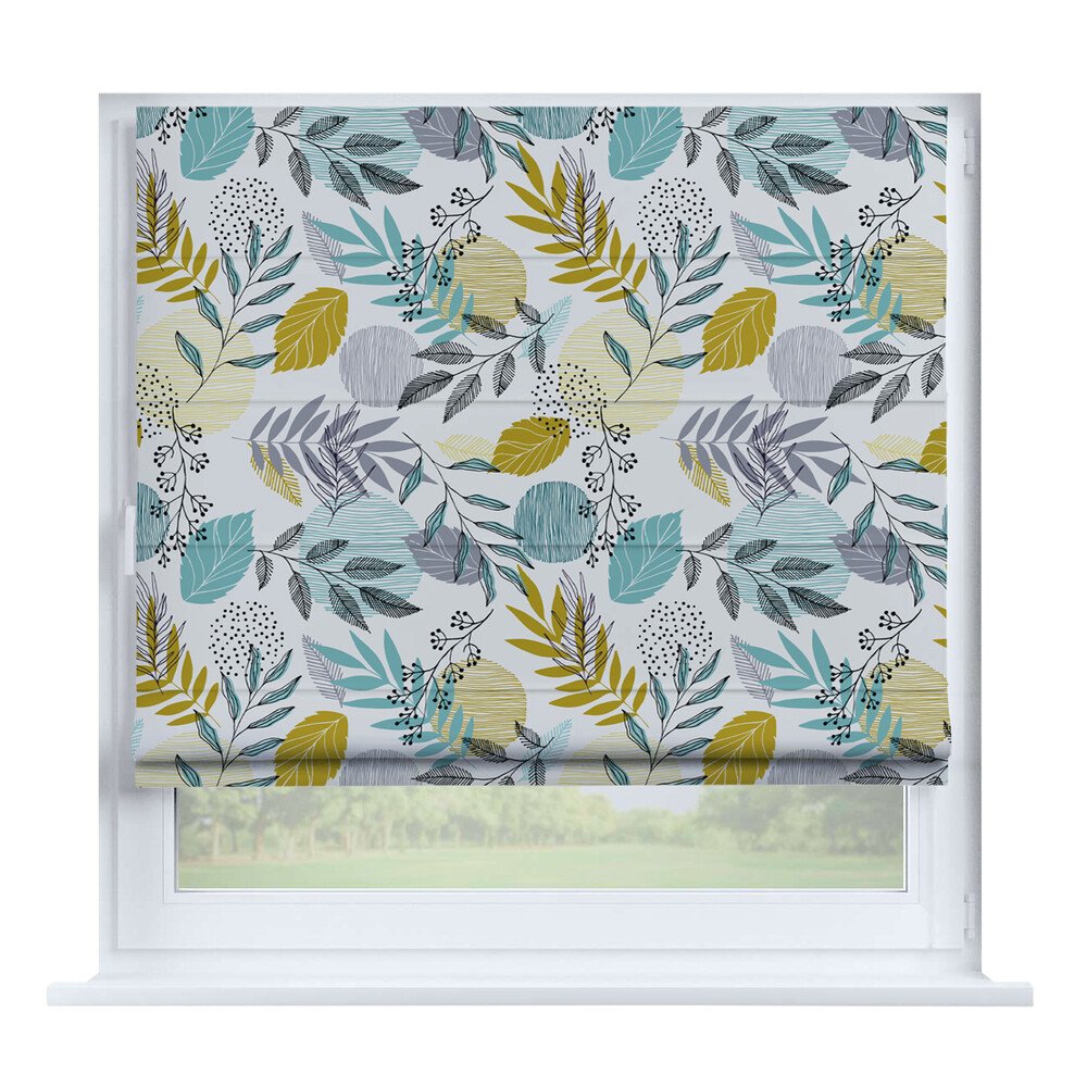 Римская штора на створку «Листья монстеры», карниз верёвочный