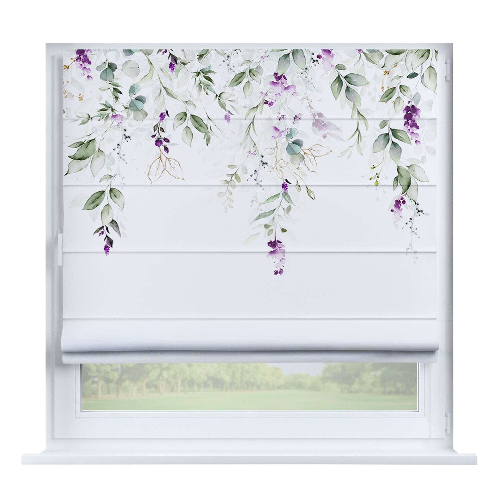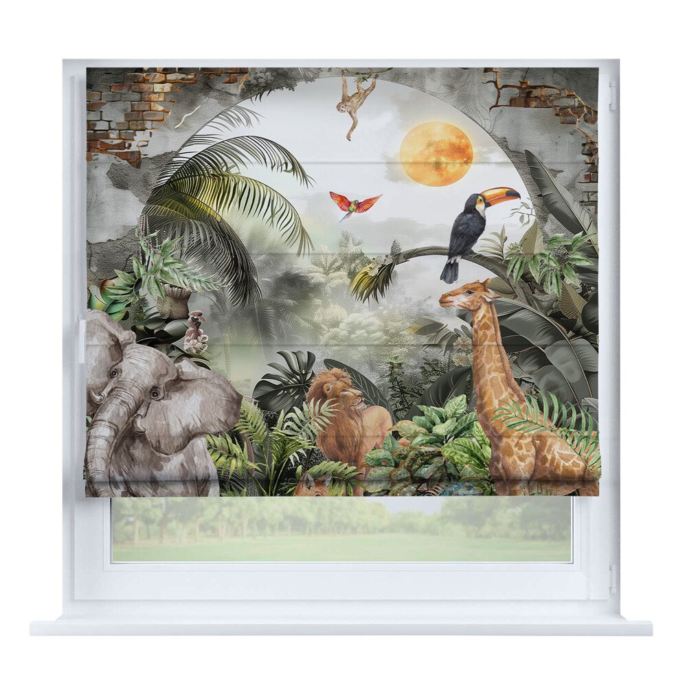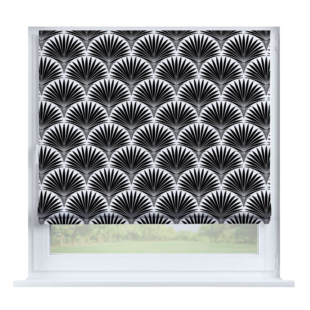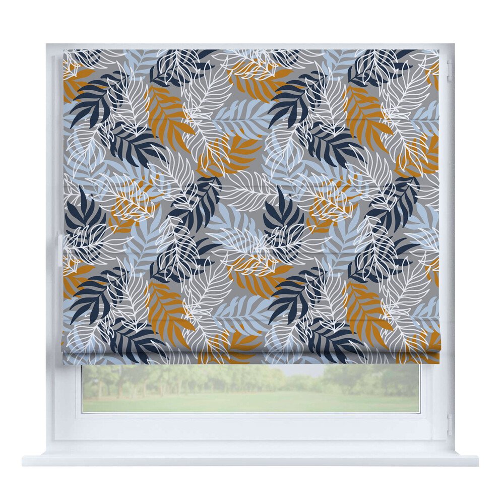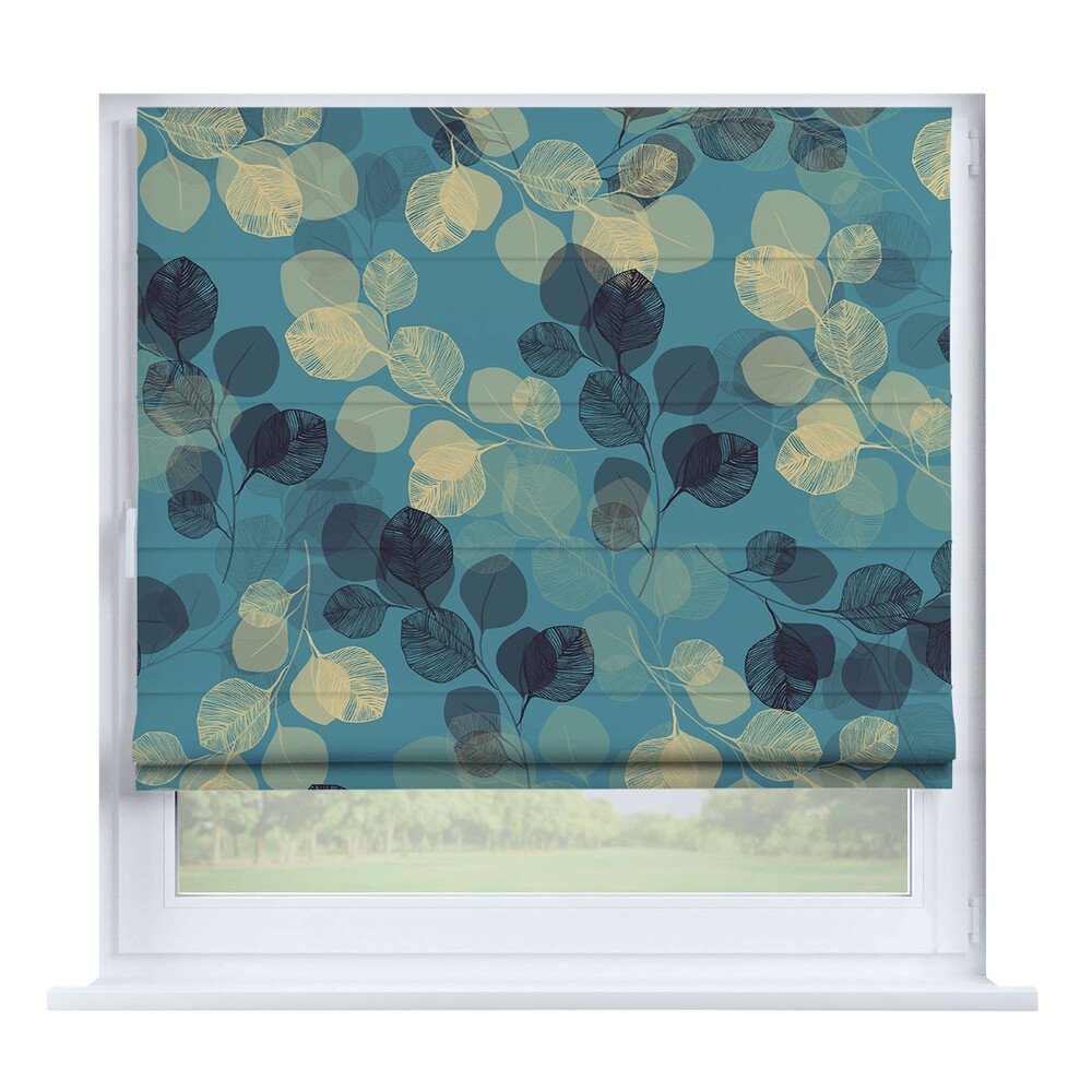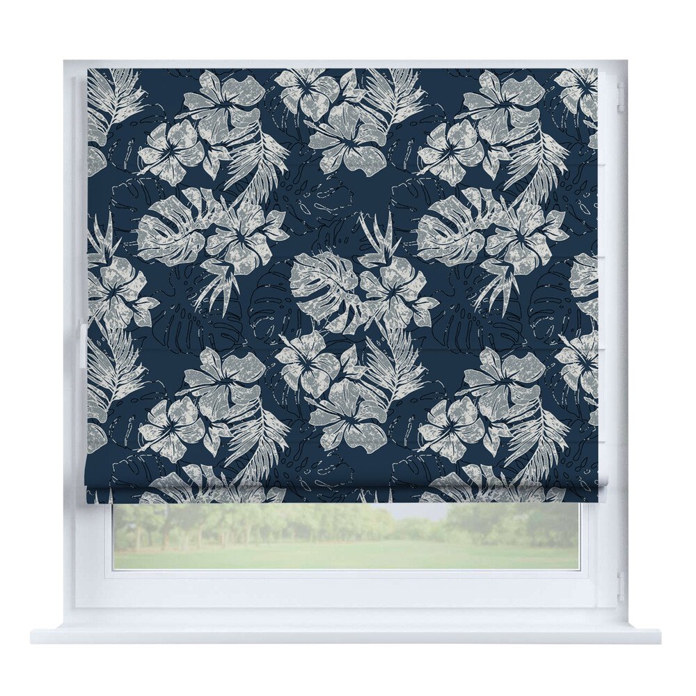 Римская штора на створку «Листья монстеры», карниз верёвочный