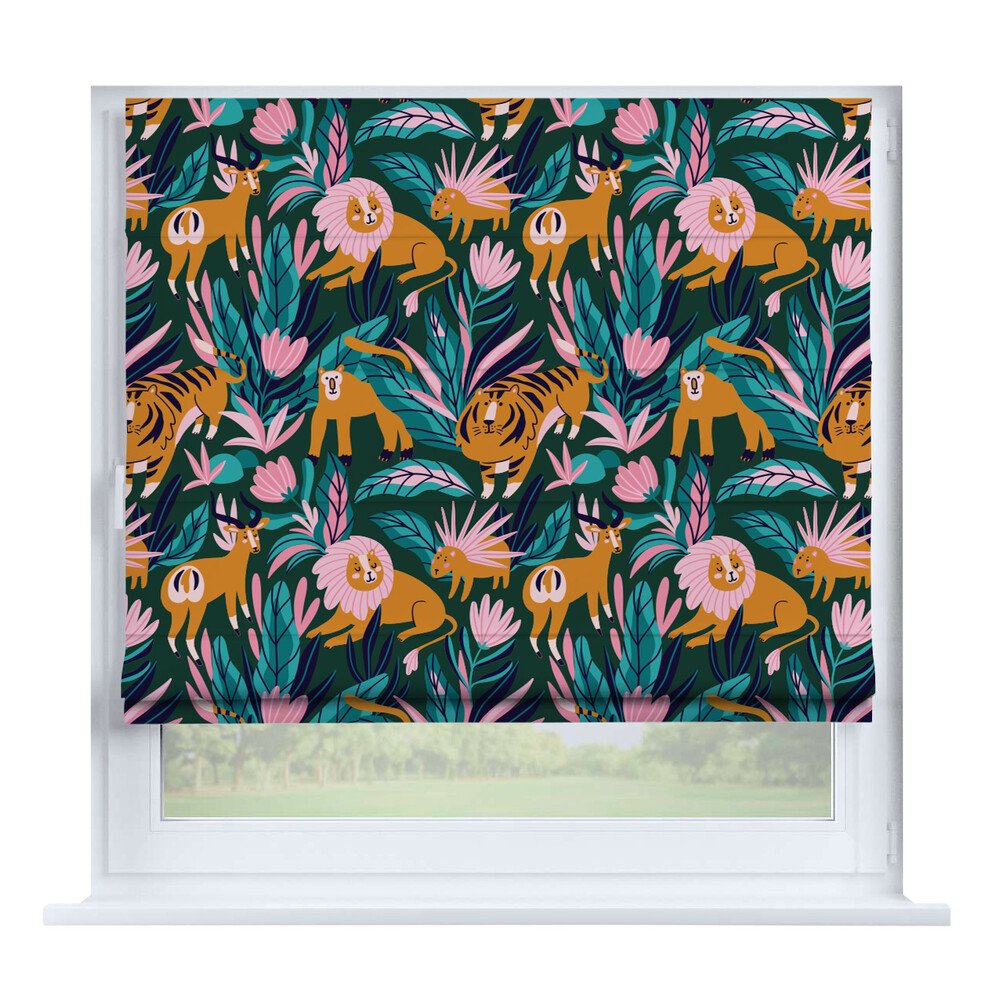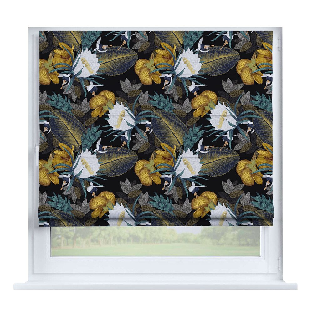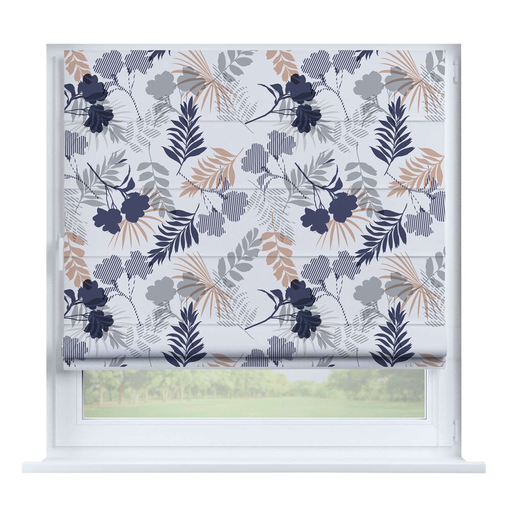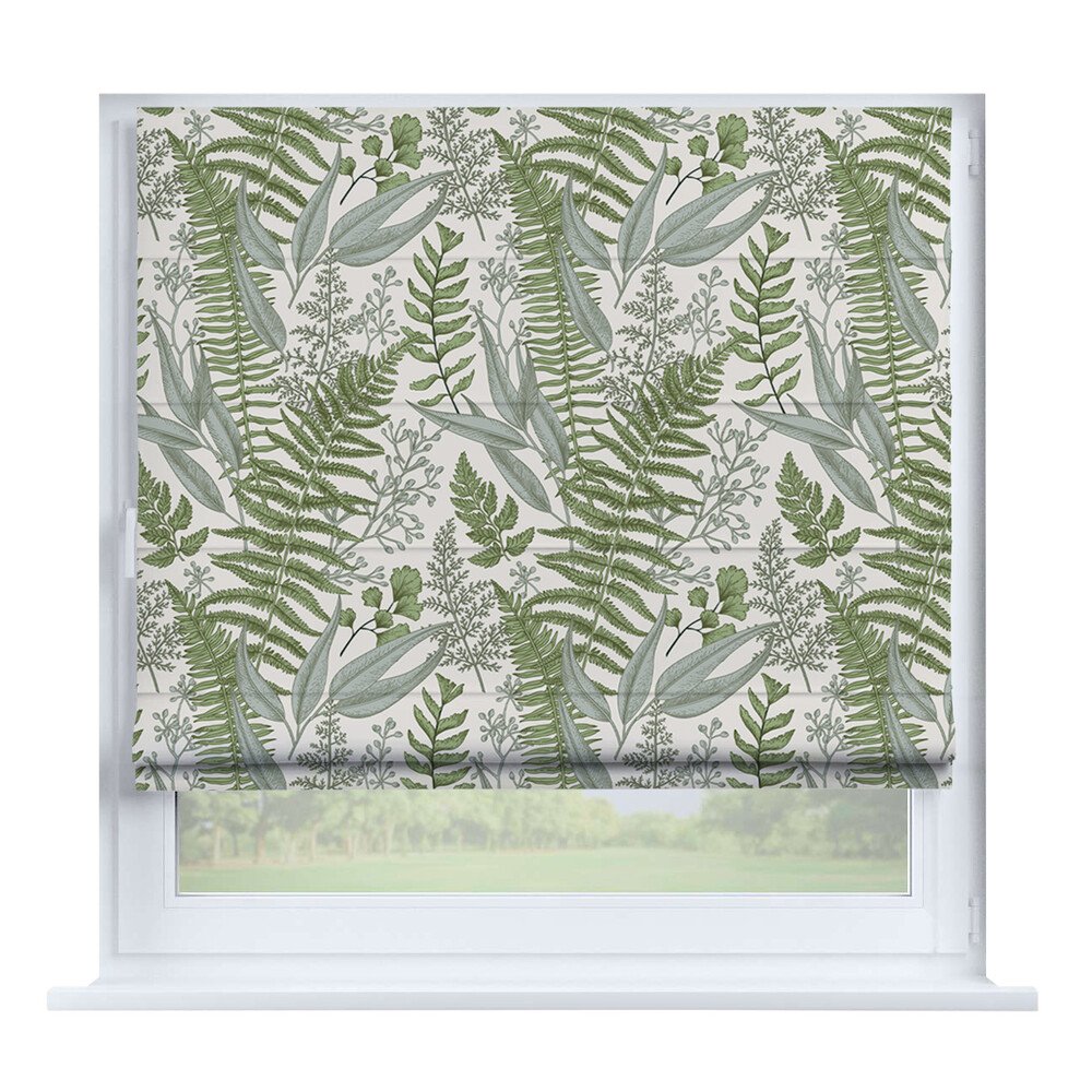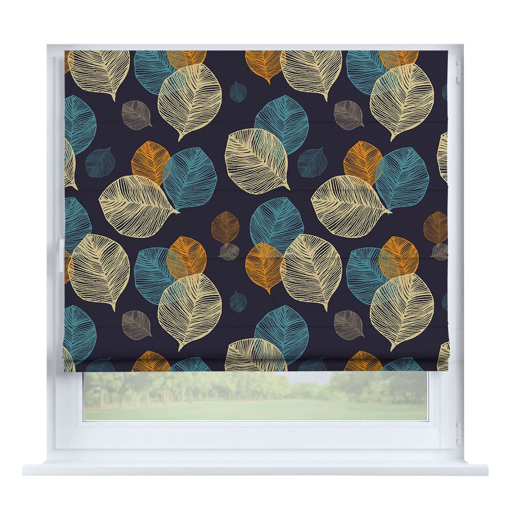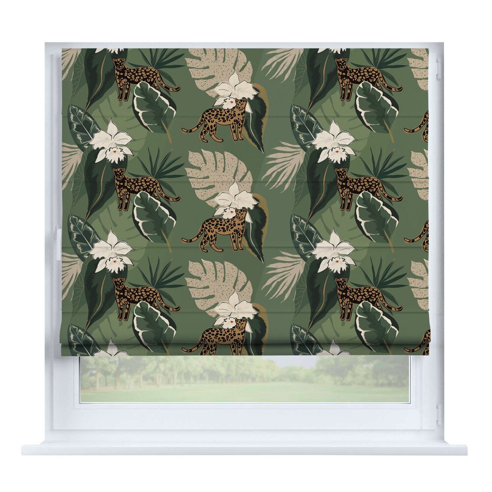 Римская штора на створку «Листья монстеры», карниз верёвочный