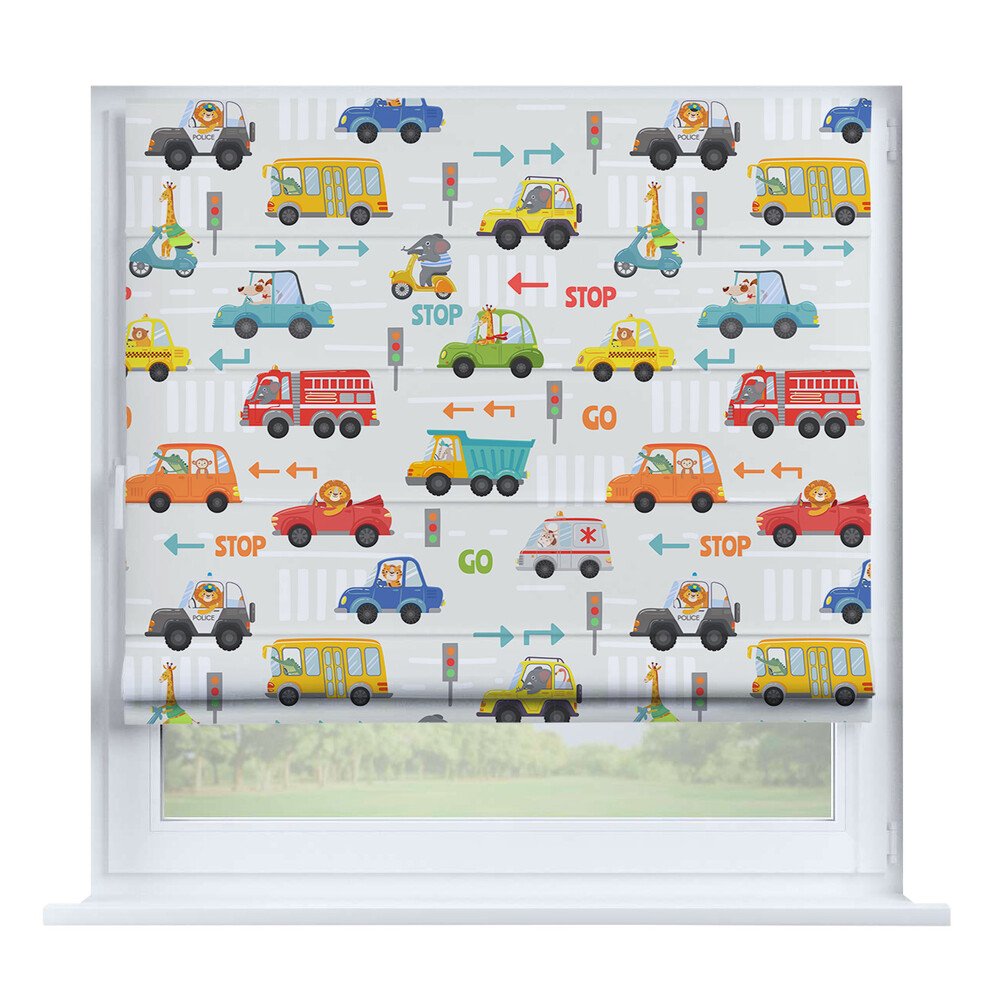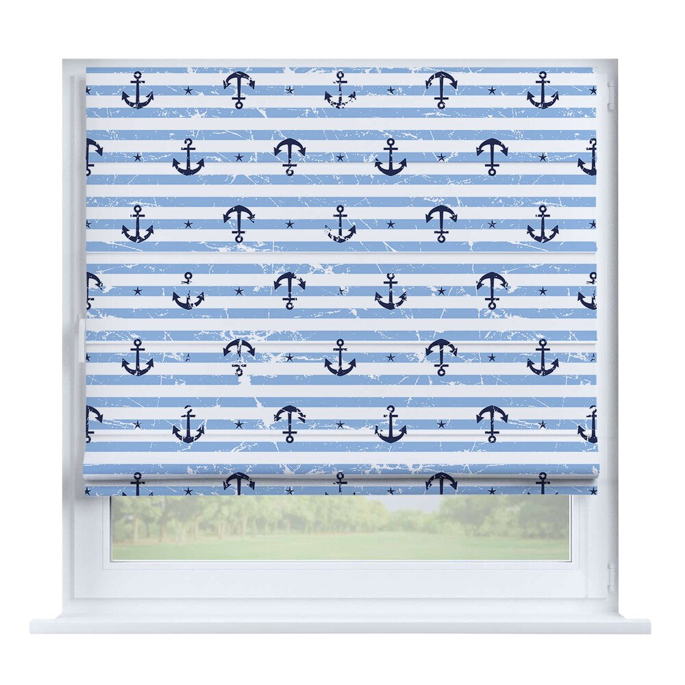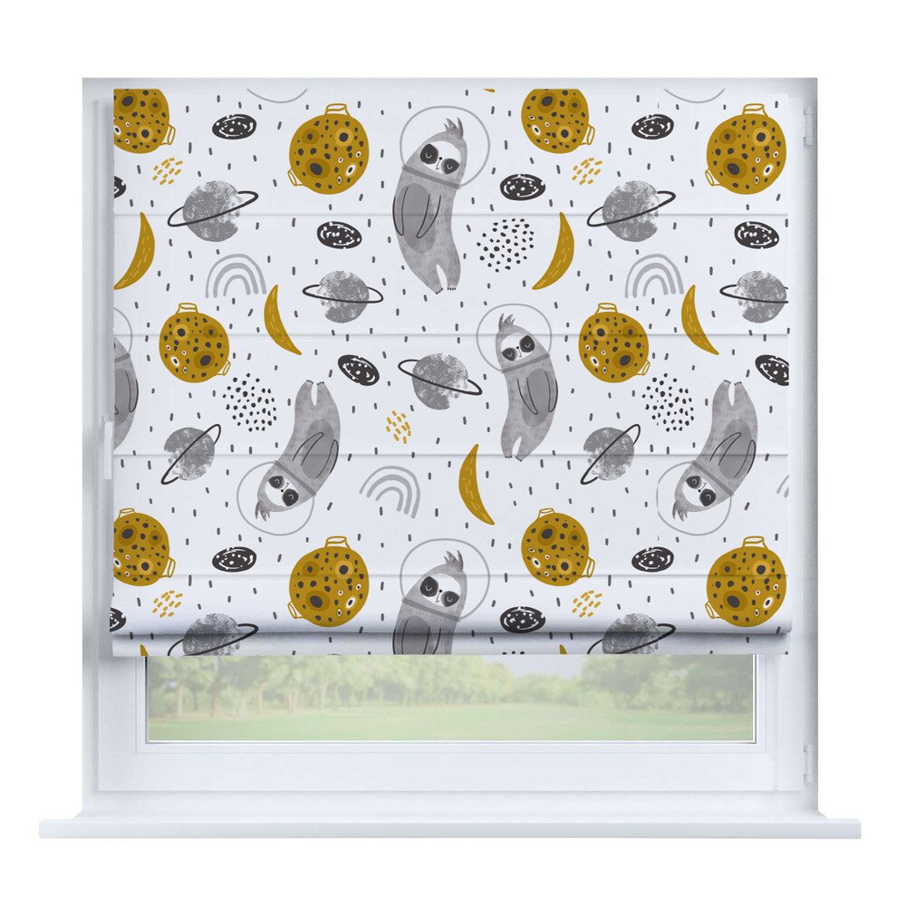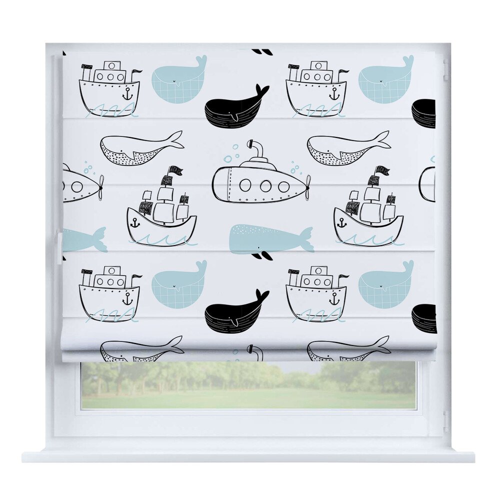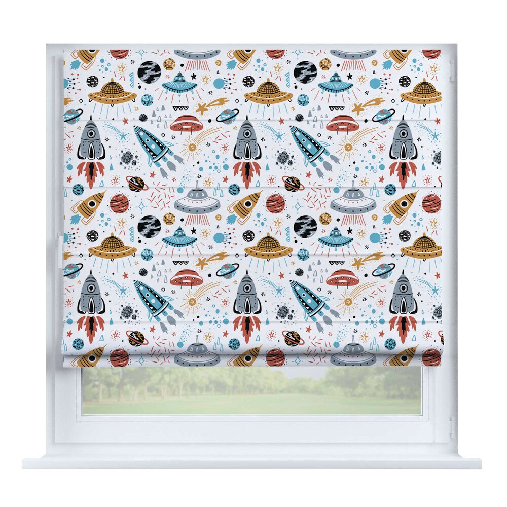 Римская штора на створку «Забавные детали», карниз верёвочный