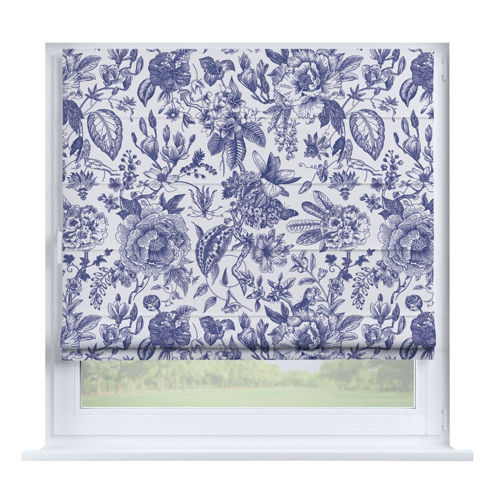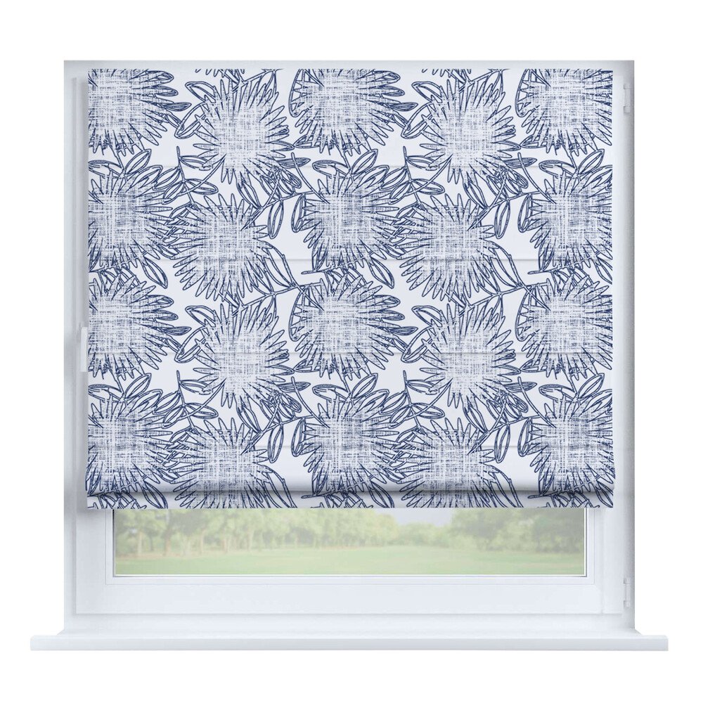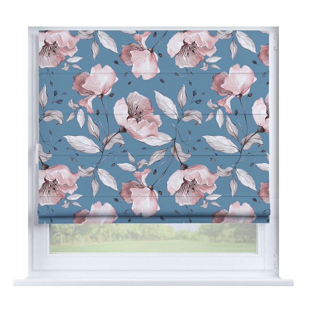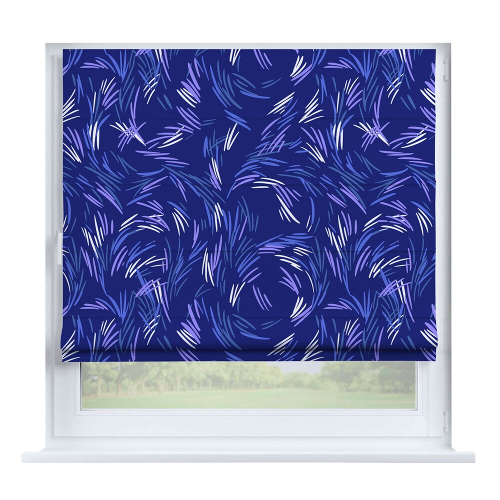 Римская штора на створку ткань вельвет васильковый, карниз верёвочный