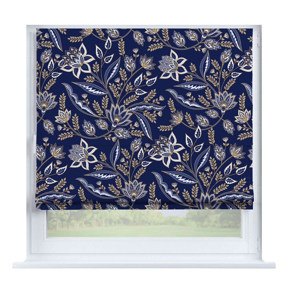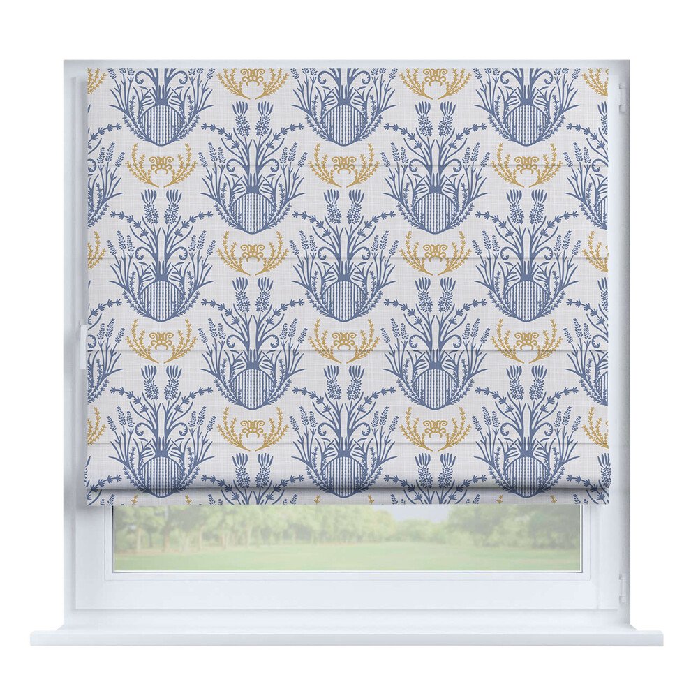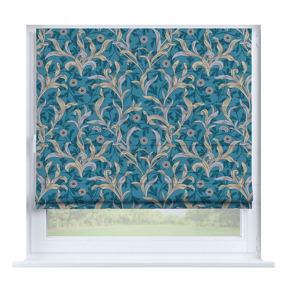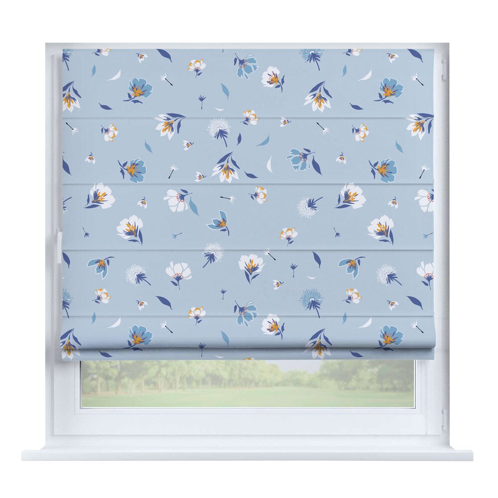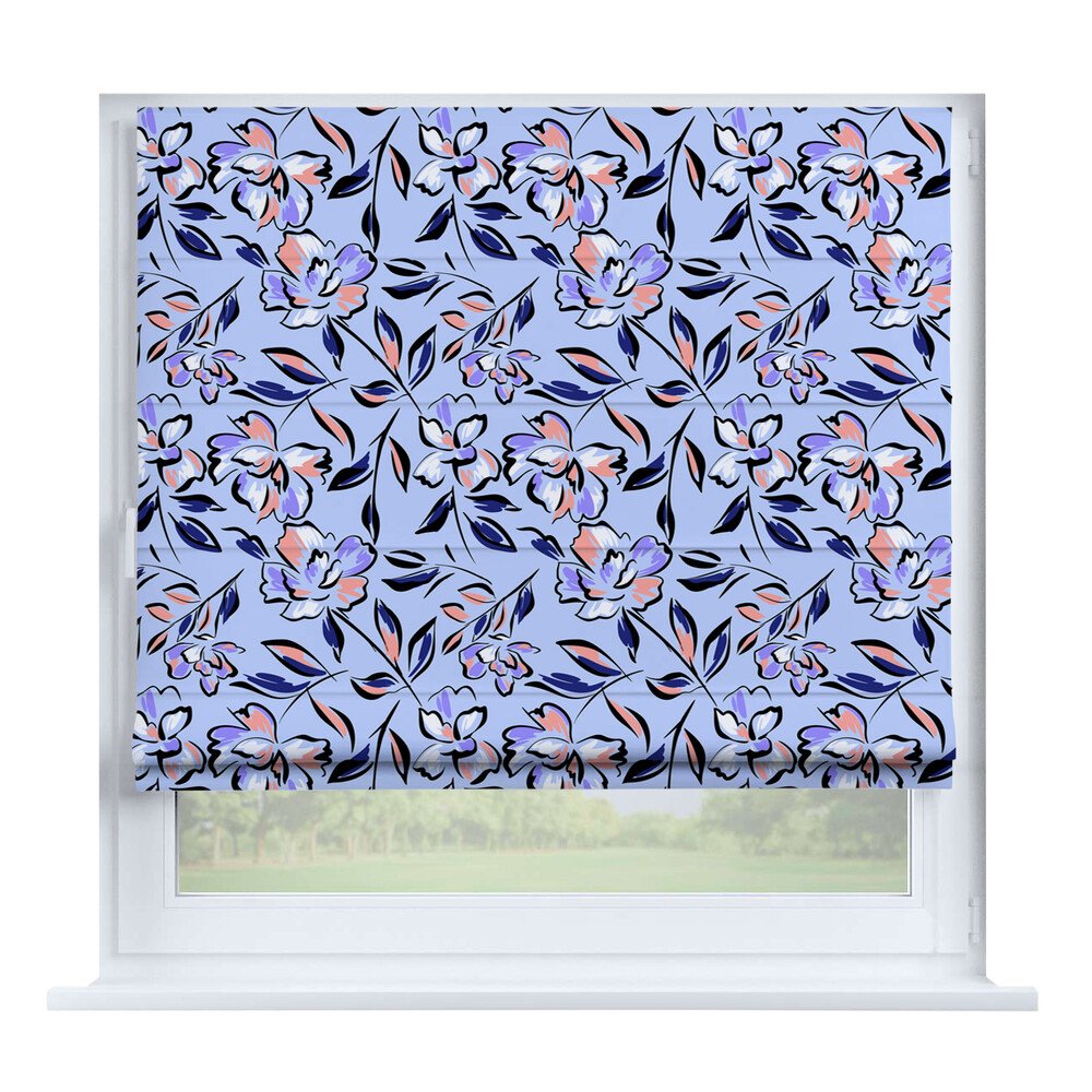 Римская штора на створку ткань вельвет васильковый, карниз верёвочный