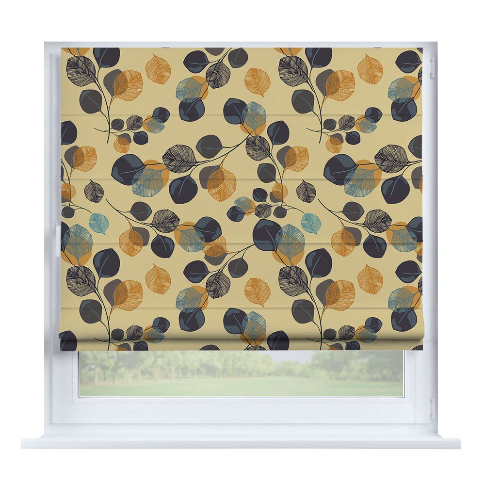 Римская штора на створку канвас горчица, карниз верёвочный