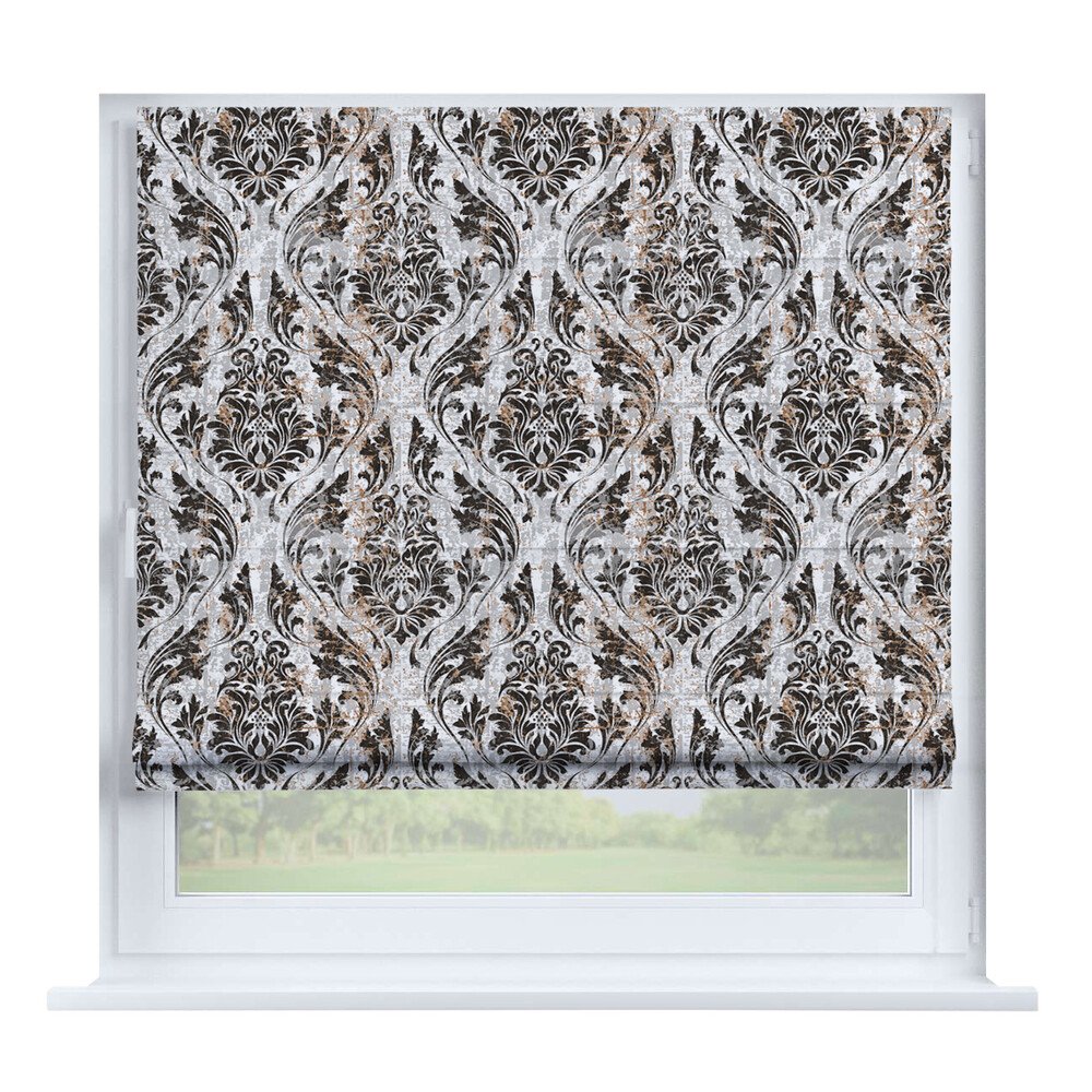 Римская штора на створку блэкаут с блеском тёмно-серый, карниз верёвочный