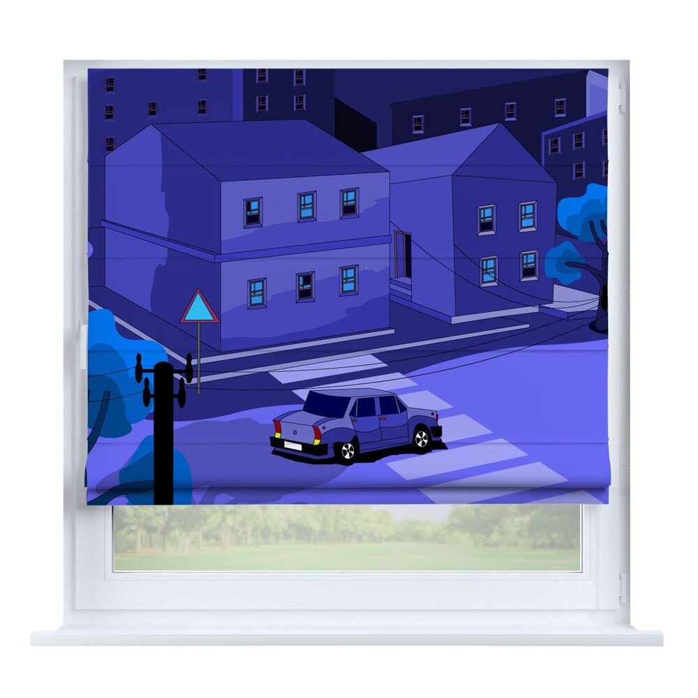 Римская штора на створку «Ночной город», карниз верёвочный